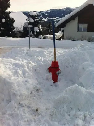 Es ist aber ein zeitliches Problem, diese Hydranten immer sofort auszuschaufeln. Die Gemeinde ist auf die Hilfe der Bevölkerung angewiesen. Wir sind Ihnen dankbar, wenn Sie zum eigenen Schutz und